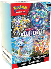 Rule the cosmos with Stellar Crown, the celestial-themed Scarlet & Violet expansion that brings new Legendary Pokémon and radiant EX cards to the TCG. This Booster Bundle includes six sealed packs featuring shimmering foils and cards tied to the mythical storylines of Terapagos and more.