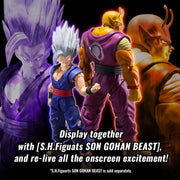 The image from the movie is reproduced to the last detail, like the figure’s balance of the head and body, the buffed up muscles, and the creased look of the martial arts uniform! Three types of facial expression parts are included as accessories, including the face shouting when Piccolo confronts Cell Max. Similarly to S.H.Figuarts Son Gohan Beast (sold separately), flexible parts are used for the martial arts uniform to achieve both appearance and mobility!