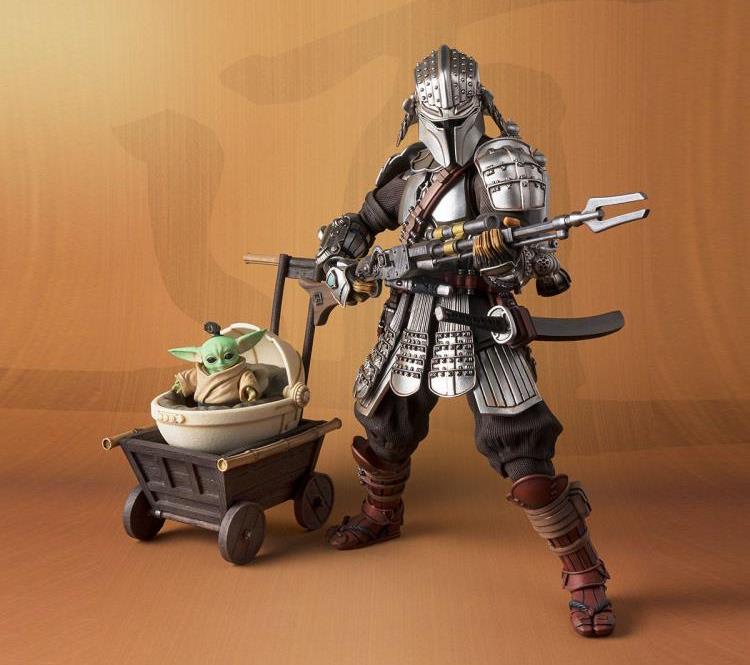 Included with this figure is an in-scale figure of Grogu who can be seated in a pram inspired by wooden pushcarts from the Samurai era of Japanese history. The Mandalorian rifle and blaster are included as is his jetpack that he received at the end of the first season of the show. With such a high attention to detail and poseability for creating your own scenes, you will want to be sure to add this clan of two to your collection!