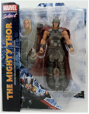 Summon Mjolnir with this Might Thor figure! Descending from Asgard, this highly detailed figure of Thor, God of Thunder, features multiple interchangeable parts including Mjolnir, a spinning hammer effect, and an alternate unhelmeted head. Measuring approximately 8" tall, this fully poseable figure has 16 points of articulation, and comes packaged in display-ready Select action figure packaging.
