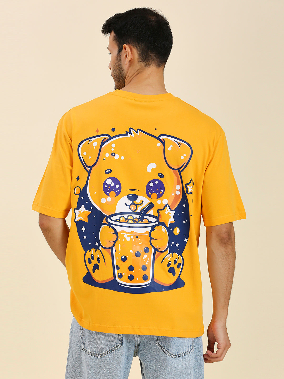 Mizuchi x Nerd Arena ‘Boba Pup’ Oversized Premium T-Shirt – Mustard Yellow (Limited Edition)