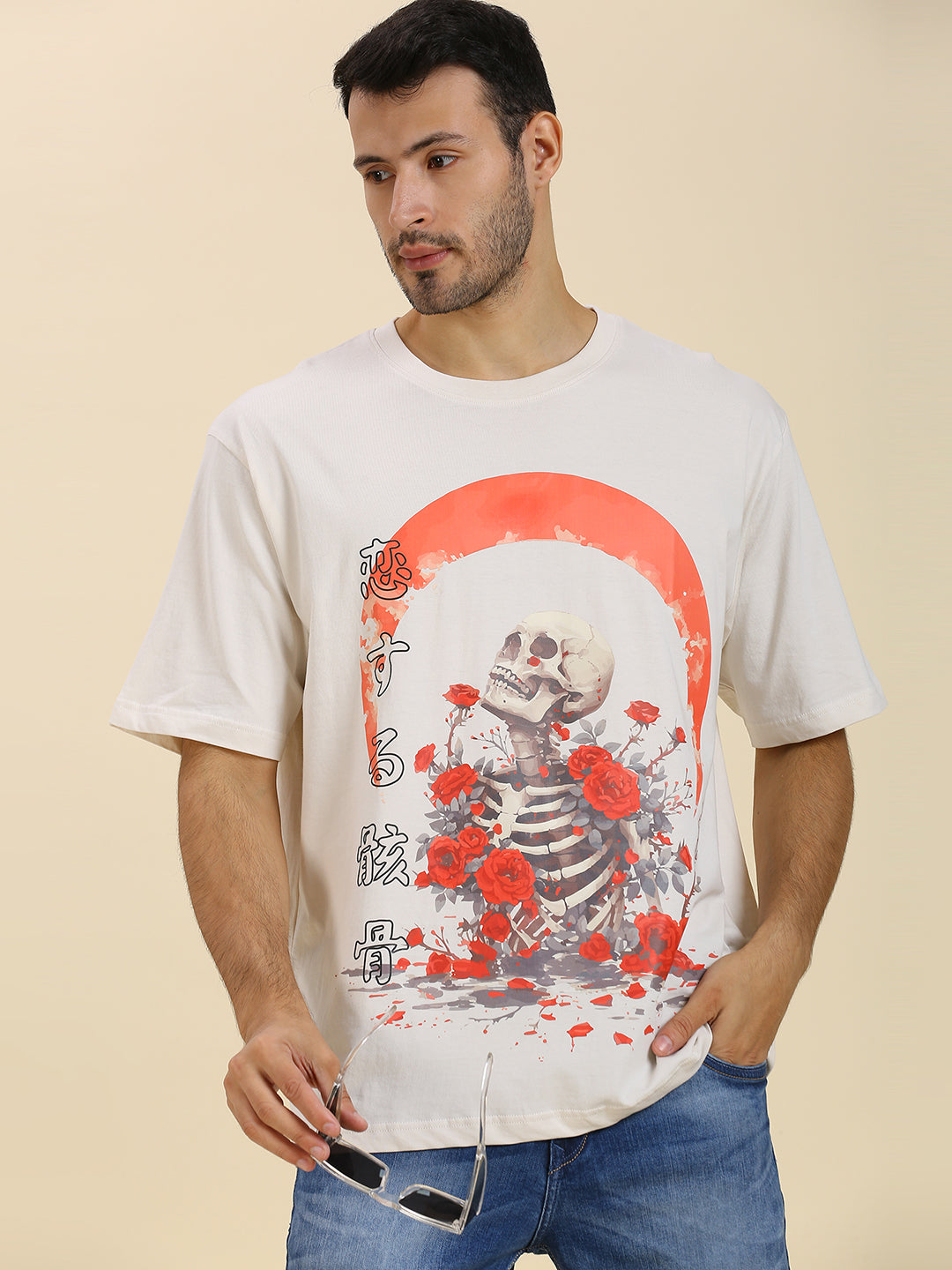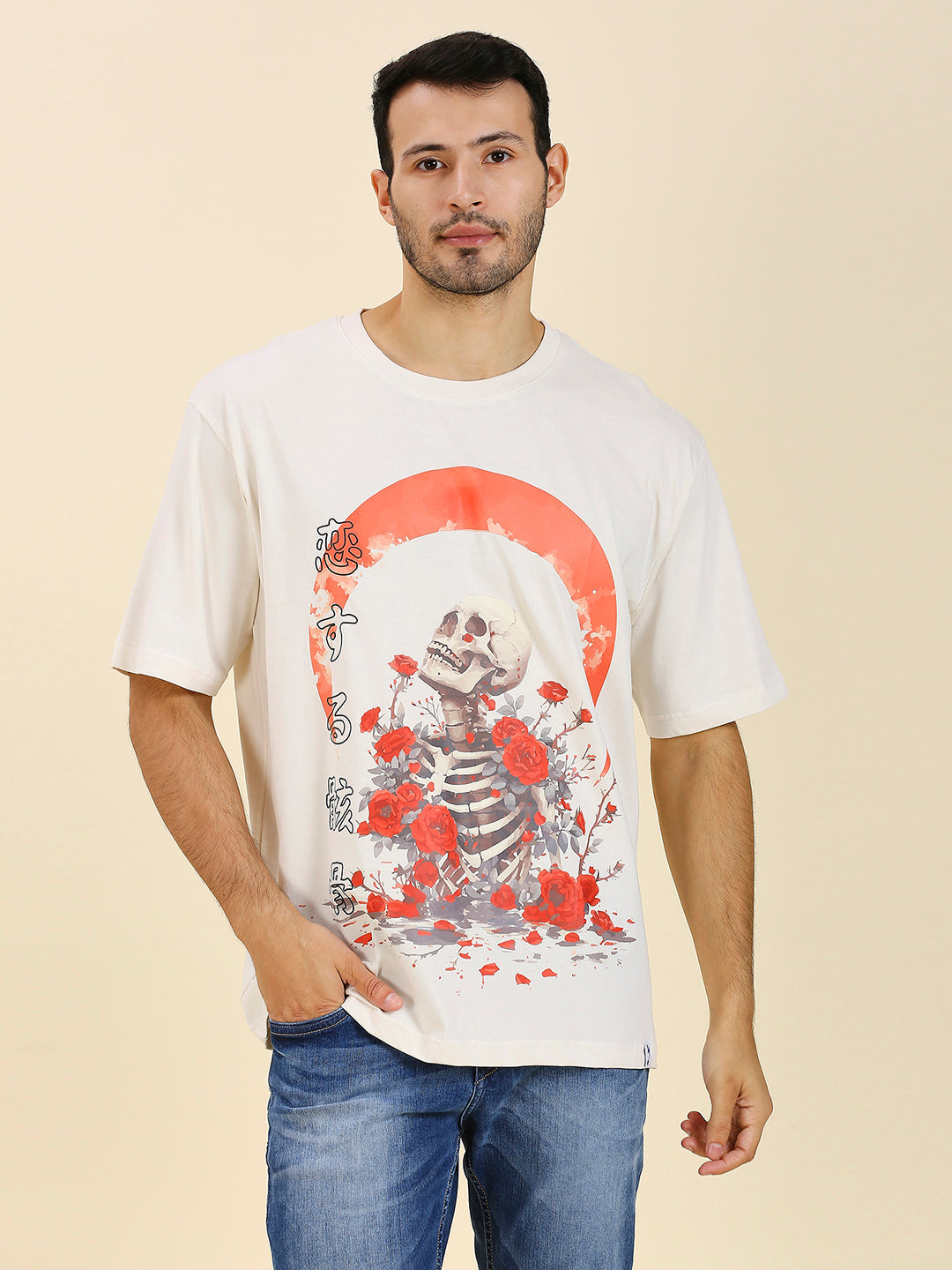 Fall in love with Love After Death—a hauntingly beautiful tee that pairs skeletal remains with blooming red roses, set against a rising sun. Kanji script down the side adds poetic edge. Soft, oversized, and emotionally charged, this tee hits where it hurts (and looks damn good doing it).