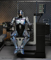 After fighting baddies all day, dock the 7" scale Ultimate Battle-Damaged RoboCop figure in the included screen-accurate chair with movable elements. The chair is over 8" tall, over 7" wide, and has swiveling seat as well as articulated swiveling monitors! RoboCop comes with even more accessories, too: interchangeable data spike fist, Auto-9 pistol, attachable muzzle blast effect, and an additional interchangeable head with the likeness of Peter Weller. Featuring upgraded deco and digital printing.